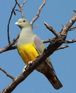 Despite its name, the Bruce's green pigeon is not green but is grey with a light yellow breast instead.