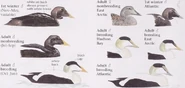 Drakes of the European, eastern North American and Asia/western North American races can be distinguished by minor differences in plumage and bill colour. Some authorities place the subspecies v-nigra as a separate species.