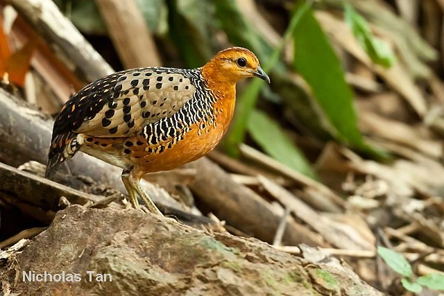 The Ferruginous partridge (Caloperdix oculeus), is a species of partridge in the Phasianidae family. It belongs to the monotypical genus Caloperdix. It is found in Indonesia, Malaysia, Myanmar, and Thailand.