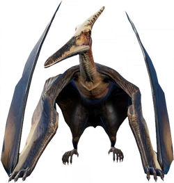 Pteranodon is a genus of pterosaurs which included some of the largest known flying reptiles, with wingspans over 6 meters (20 ft). It existed during the late Cretaceous geological period of North America. More fossil specimens of Pteranodon have been found than any other pterosaur, with about 1,200 specimens known to science, many of them well preserved with nearly complete skulls and articulated skeletons. It was an important part of the animal community in the Western Interior Seaway.