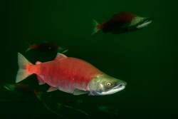 The Sockeye Salmon (Oncorhynchus nerka), also known as the Red Salmon, is a fish in the family Salmonidae commonly found in the Northern Pacific Ocean and rivers discharging into it.